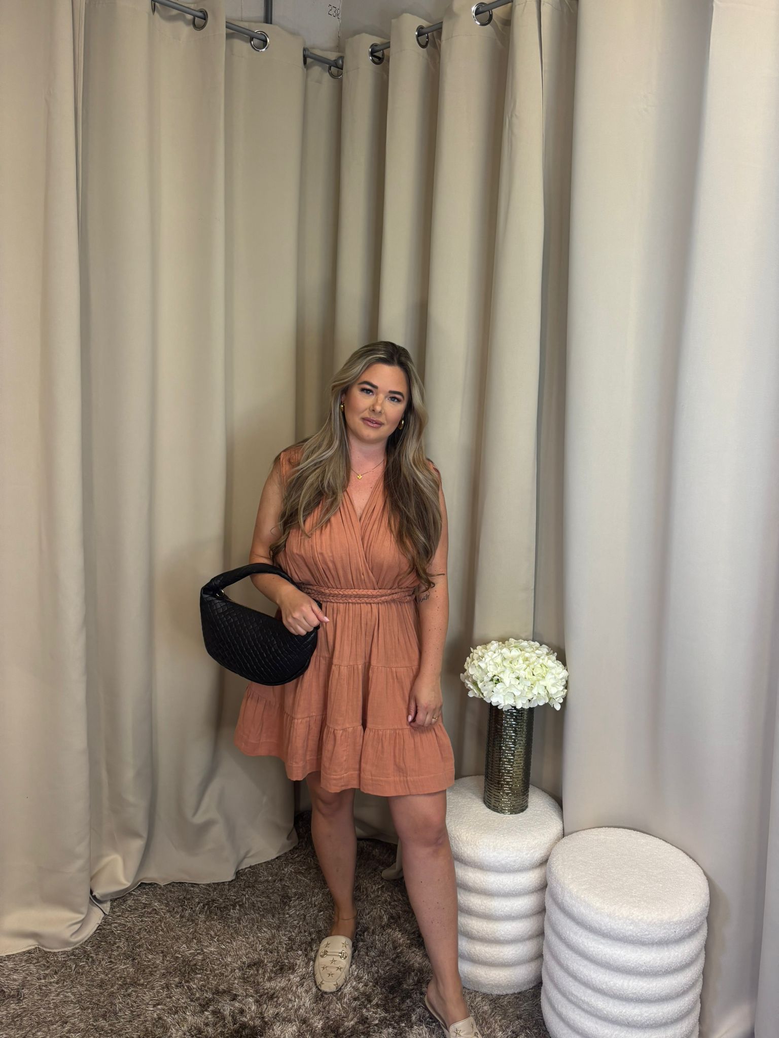This beautiful dress in a warm terracotta color is perfect for both a day at the beach and a night out. Pair it with sandals for a relaxed look or with beautiful heels for an elegant evening outfit. The included drawstring allows you to tie the dress as desired, while the elastic waistband ensures a comfortable and flattering fit. The dress is one size fits all and fits sizes up to and including L.
