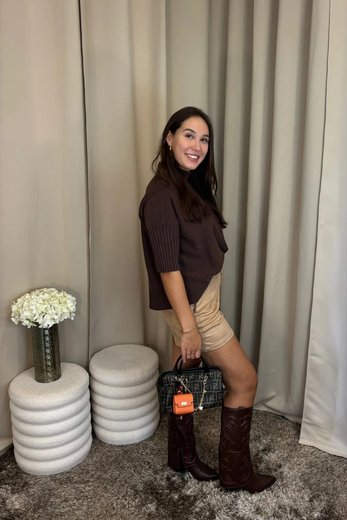 Ons model draagt S, normaal gesproken een maat S en is 1,70 m.